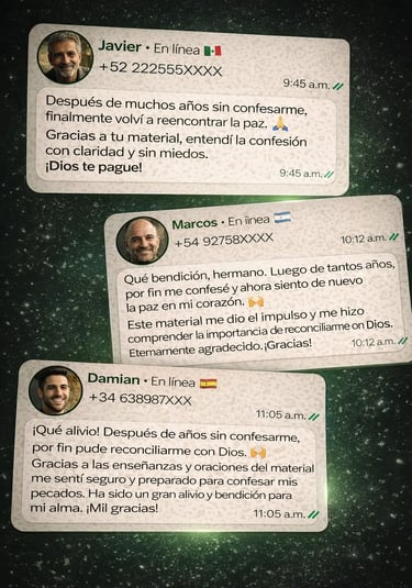Testimonios reales de hombres y mujeres que hoy viven la Confesión sin miedo, con claridad espiritual y un corazón reconciliado gracias a este material